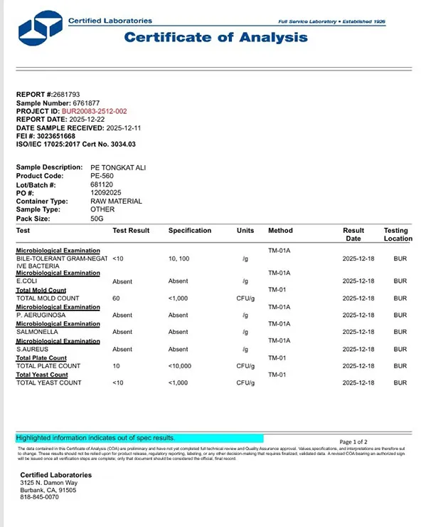 Government-Authorized, Independently Lab-Tested Tongkat Ali