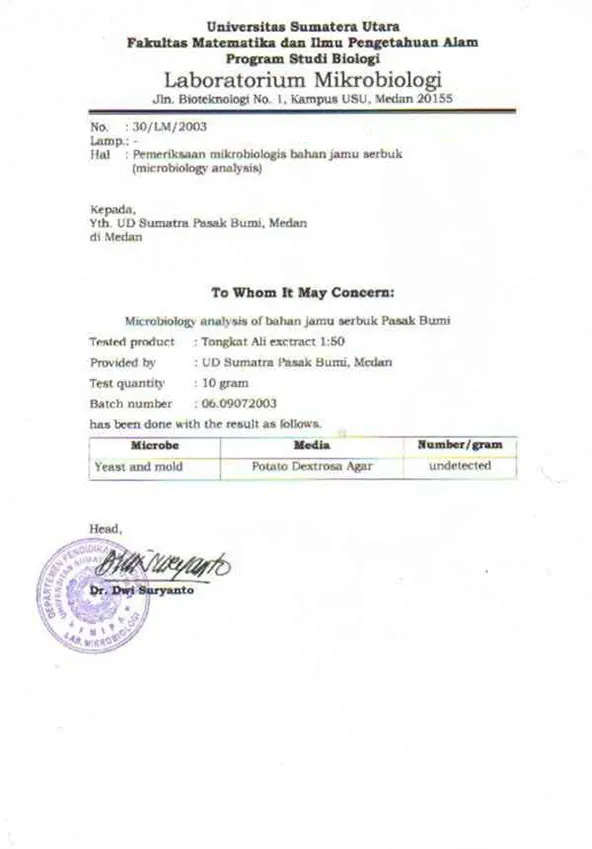 重金属分析証明書 — KBioCorp(マレーシア・ケダ州)